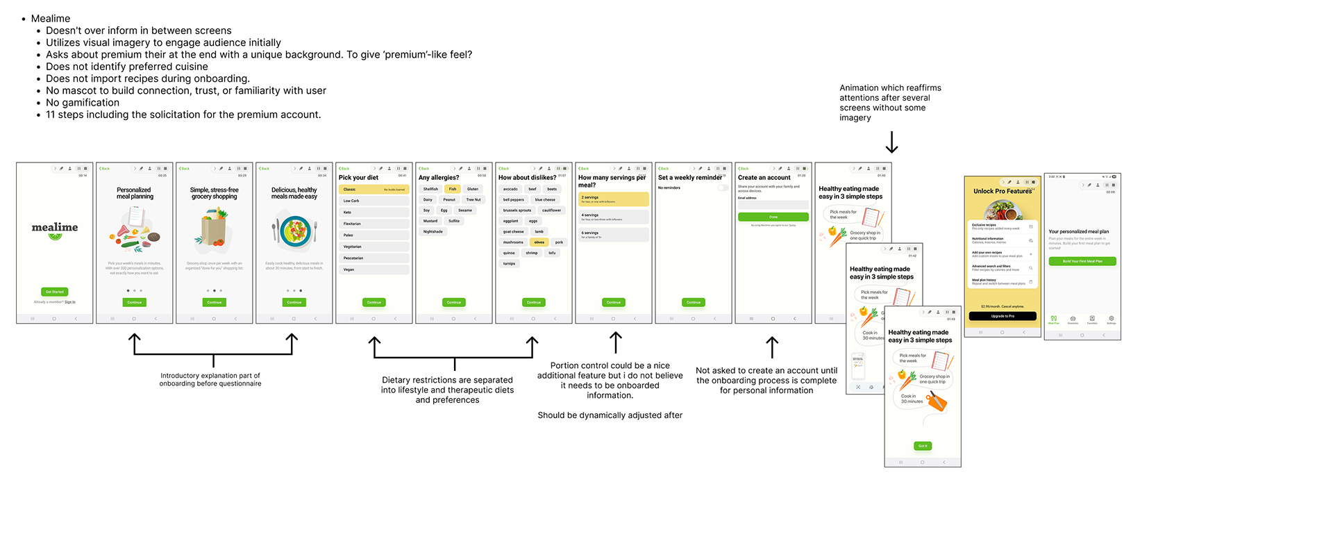 -Mealime (pictured below): Biggest Competitor. Does not identify preferred cuisine or import recipes, no gamification, 11 steps total.