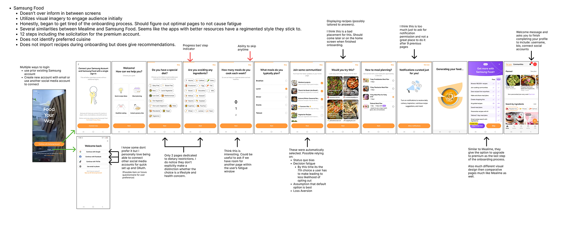 -Samsung Food (pictured below): Biggest Competitor. Does not identify preferred cuisine or import recipes, no gamification, 12 steps total